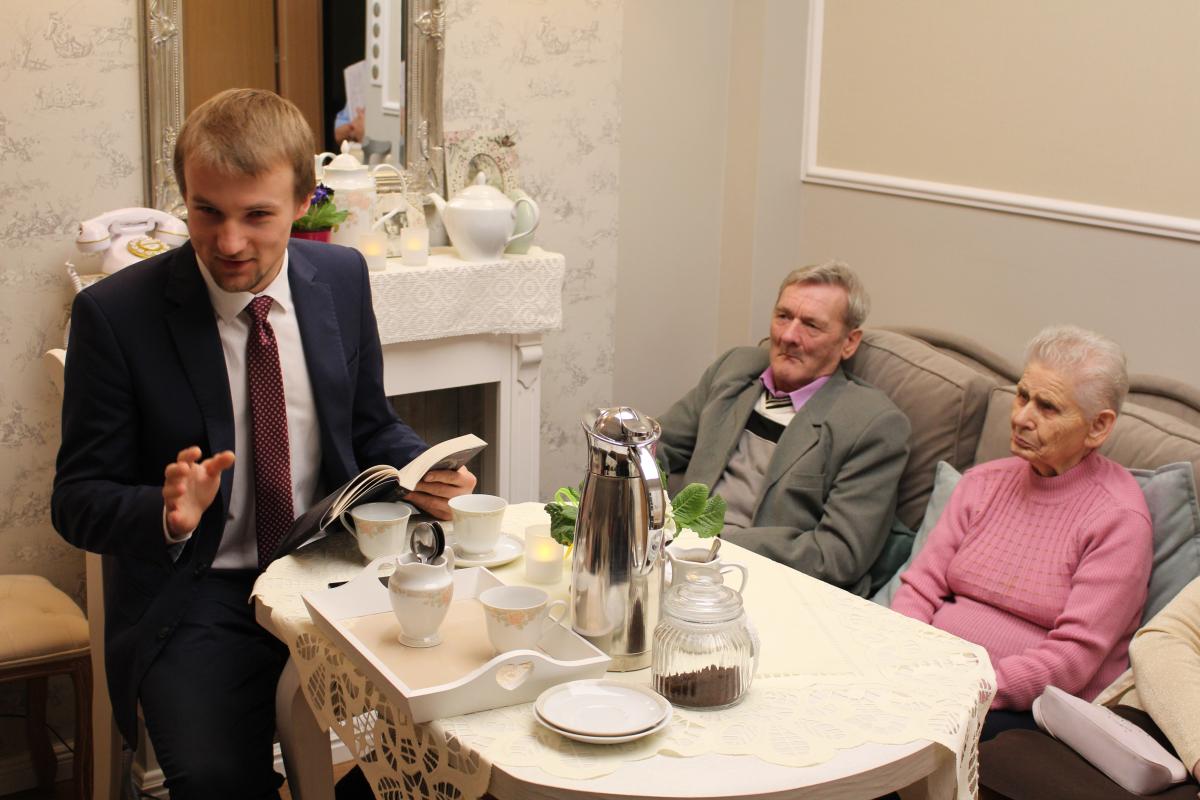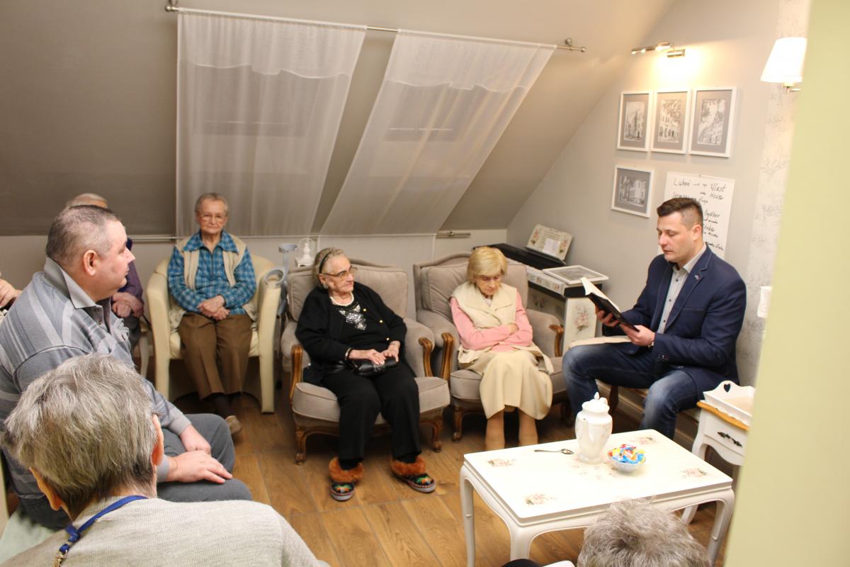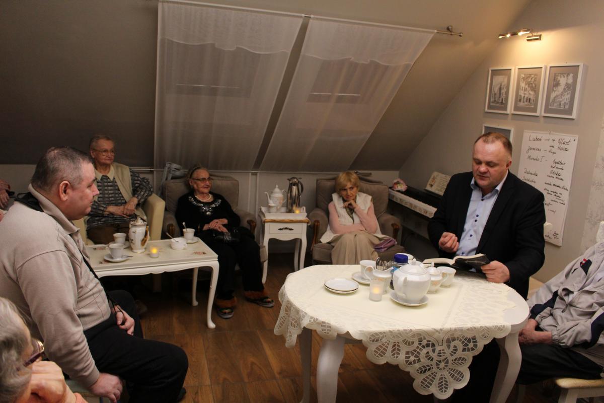 Cykl spotkań w scenerii przytulnego saloniku w Pokoju Marzeń rozpoczął dnia 16 lutego 2016 r. Dyrektor Domu Pan Bogusław Mikita.