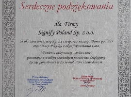 Wydarzenie to zapoczątkowało długofalową współpracę pomiędzy Domem Pomocy Społecznej im. Jana Pawła II w Pile, Stowarzyszeniem Przyjaciół Domu Pomocy Społecznej w Pile, a firmą SIGNIFY sp. z o.o., którą w tym dniu reprezentowały Pani Ewa i Pani Agata.